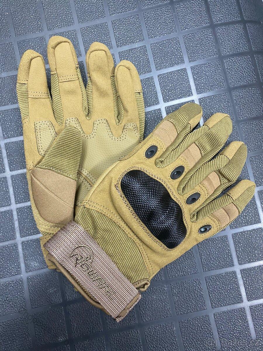 Taktické rukavice vhodné i na motorku s výztuhou dlaně a chrániči kloubů.
