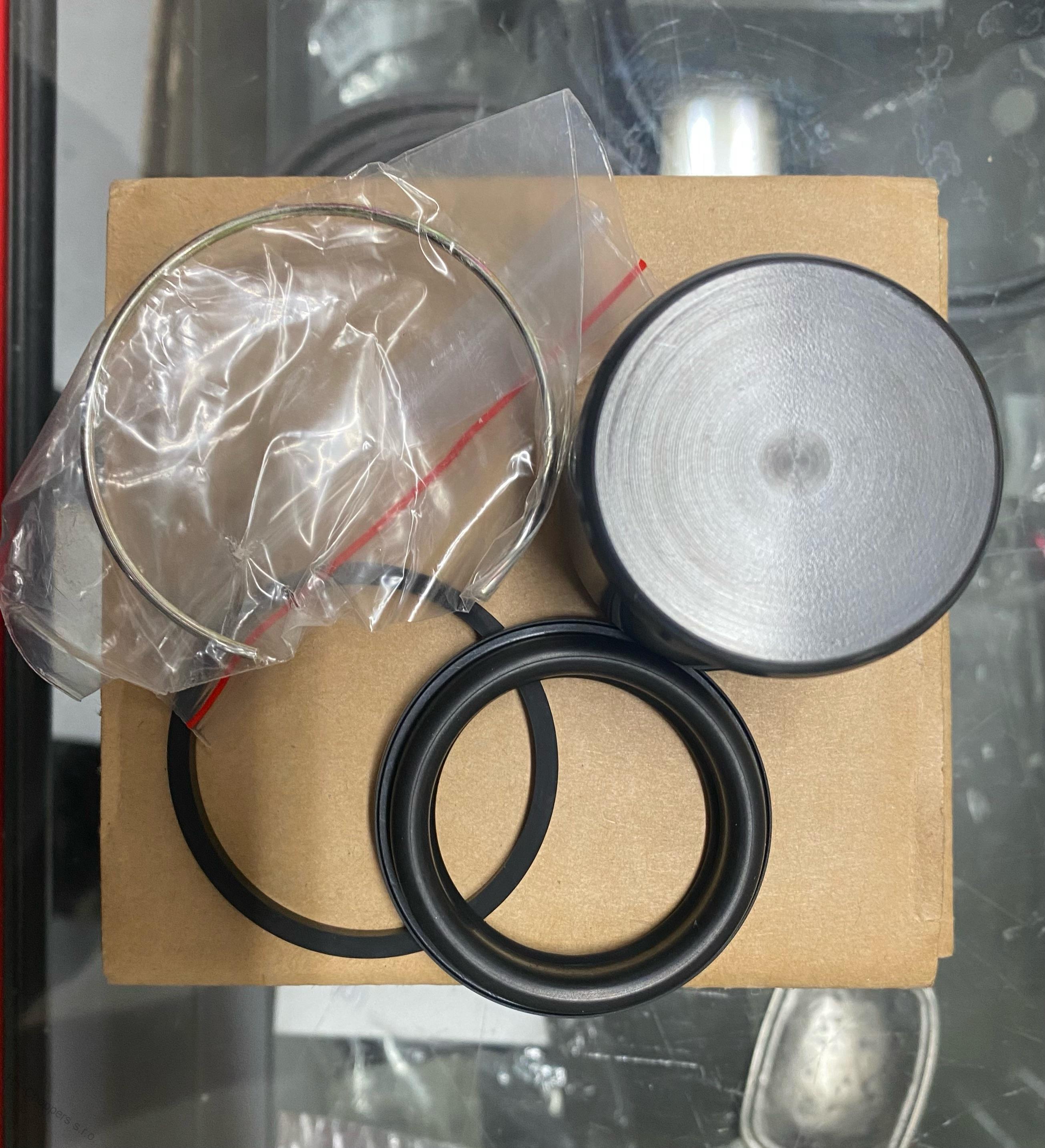 Repasní sada na brzdový třmen - gufero, těsnící guma, C klip a váleček pro motocykly Harley-Davidson z let 1984 až 1999.